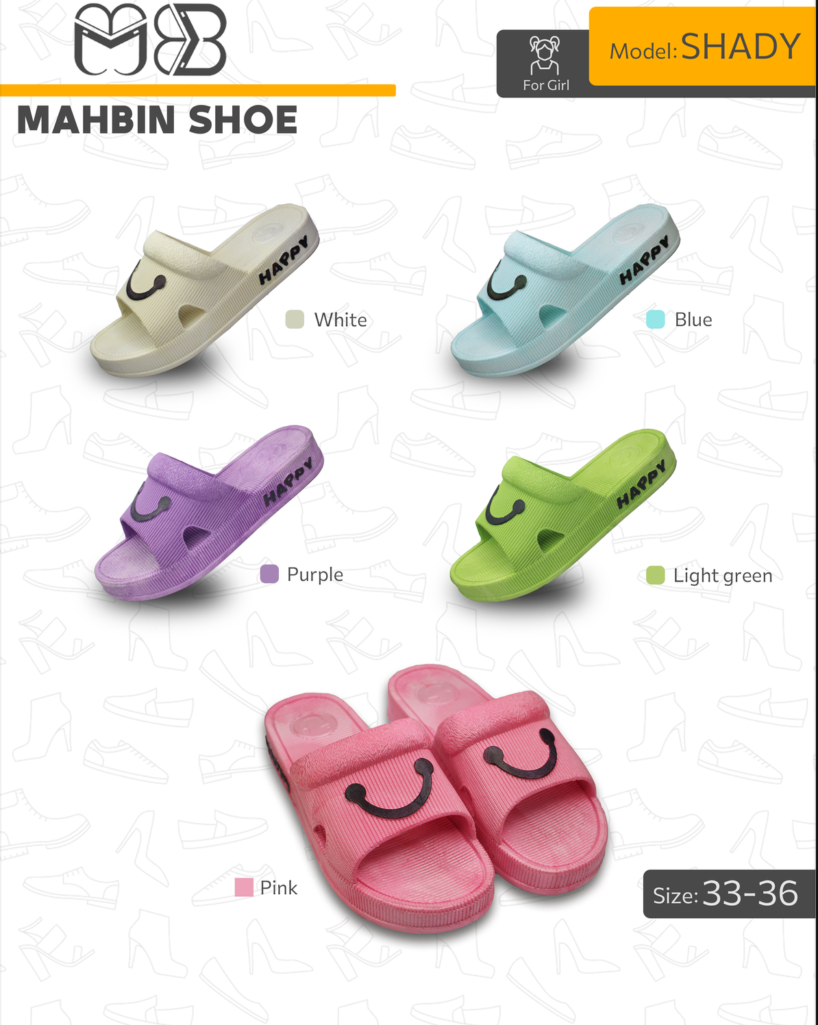 SHADY slippers are designed with a focus on comfort, lightweight performance, and cheerful appearance. Their one-piece construction and soft structure make them suitable for everyday home use by girls and women.